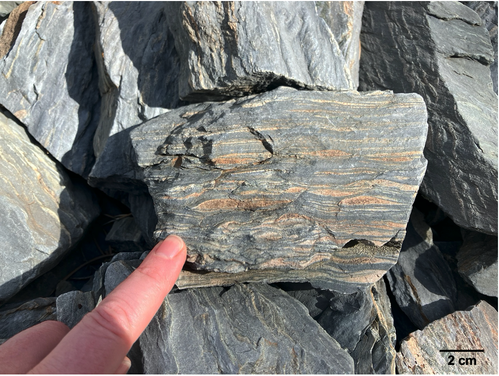 "We can use the analogy of boudinage in the rock record [image at right], where boudins, which is French for sausage, develop in a rigid, ‘stronger,' rock layer among less competent, ‘weaker,' rock," Jackson says.